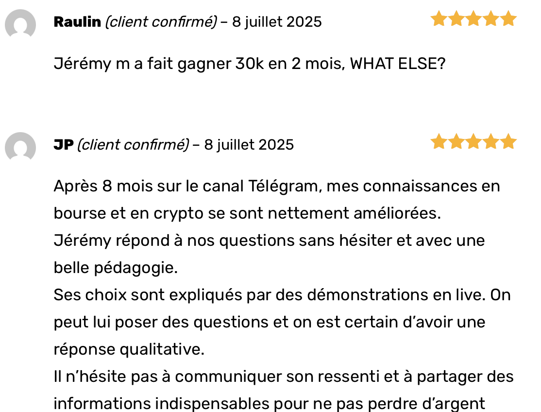 ✅ Accès direct aux signaux d’achat/vente via Telegram. Tu recevras mes call en direct, exactement au moment où je prends mes positions.