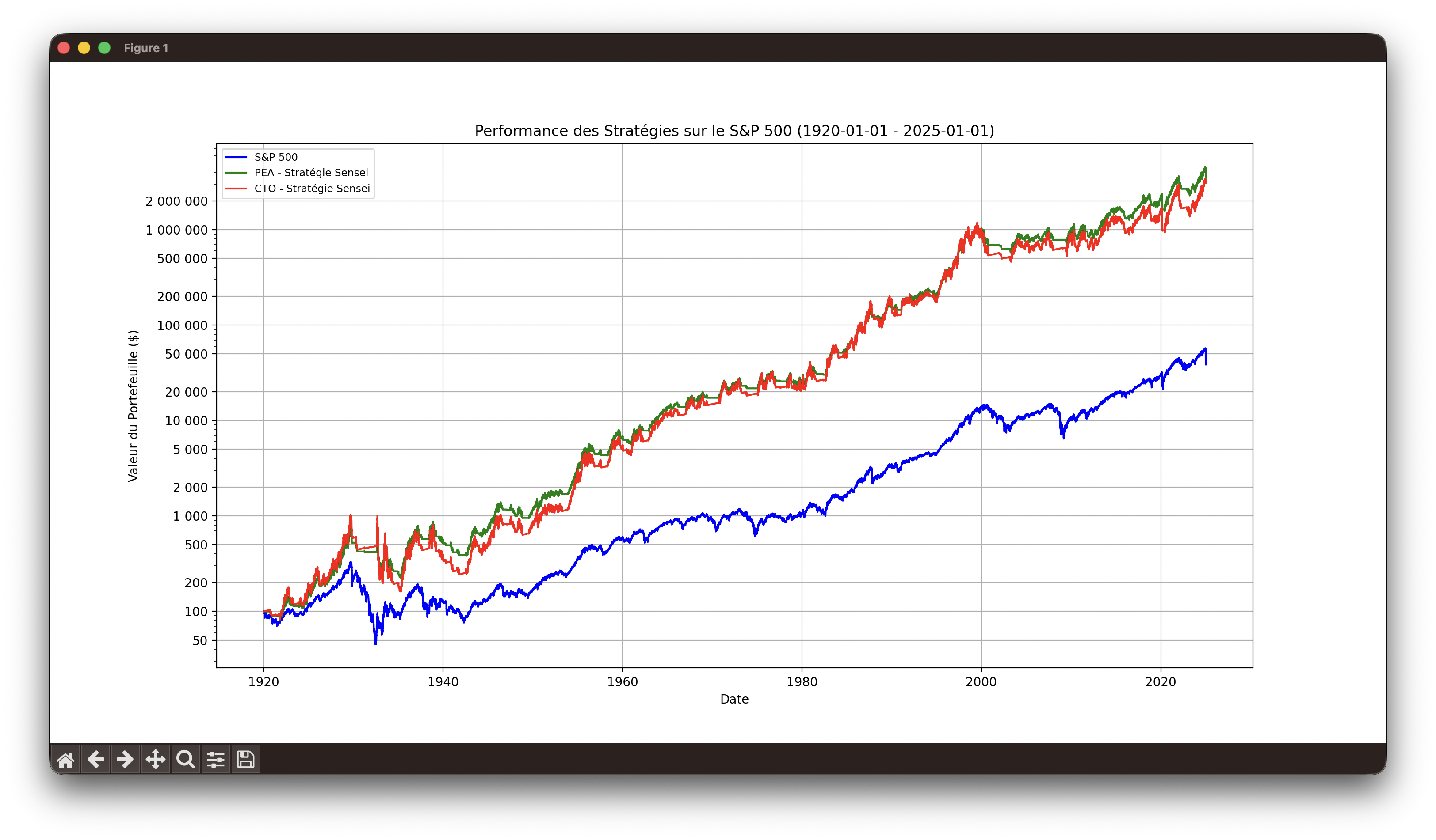Un aperçu des performances backtest entre le 2 janvier 1920 et le 1er Janvier 2025.