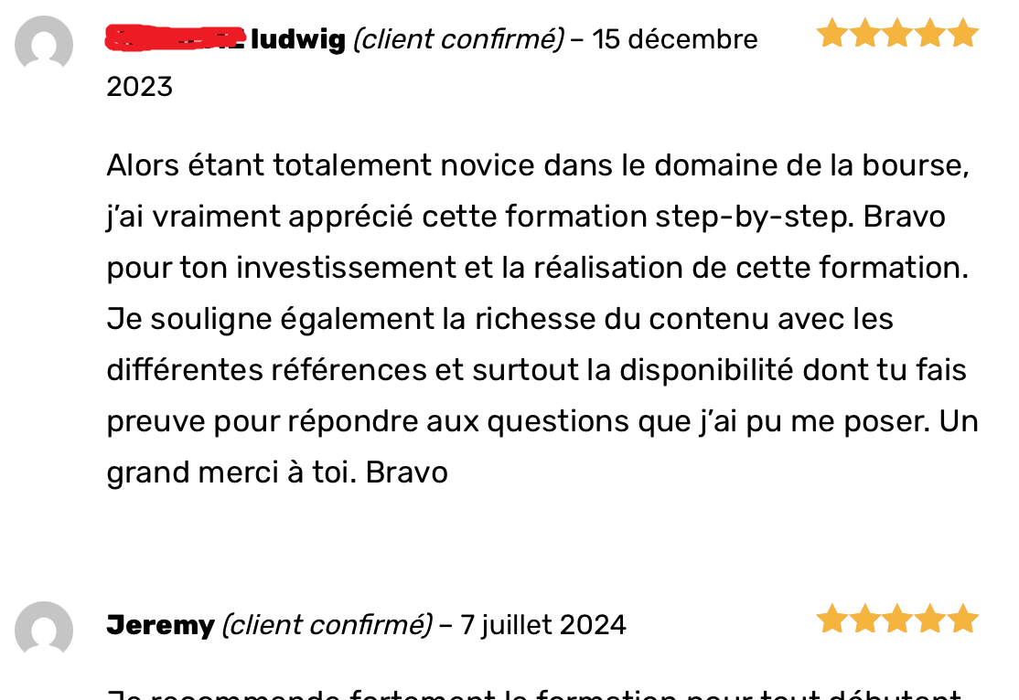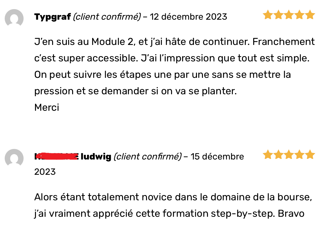 Avec cette formation, tu pourras commencer à investir sereinement en utilisant les bons outils financiers, éviter les erreurs que la majorité des débutants font, et avoir le contrôle de tes émotions.